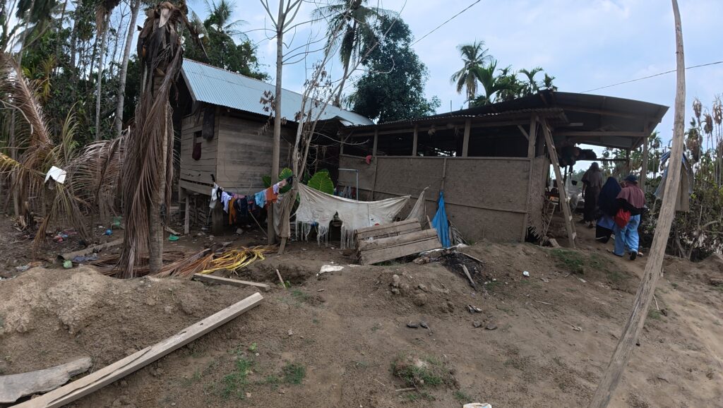 “Dulu kalau banjir, biasanya tidak tinggi. Paling-paling sebetis, pernah juga sepaha,” kata seorang perempuan paruh baya yang mengikuti Tim ke rumah narasumber, “tapi tidak pernah seperti kemarin (November 2025).”