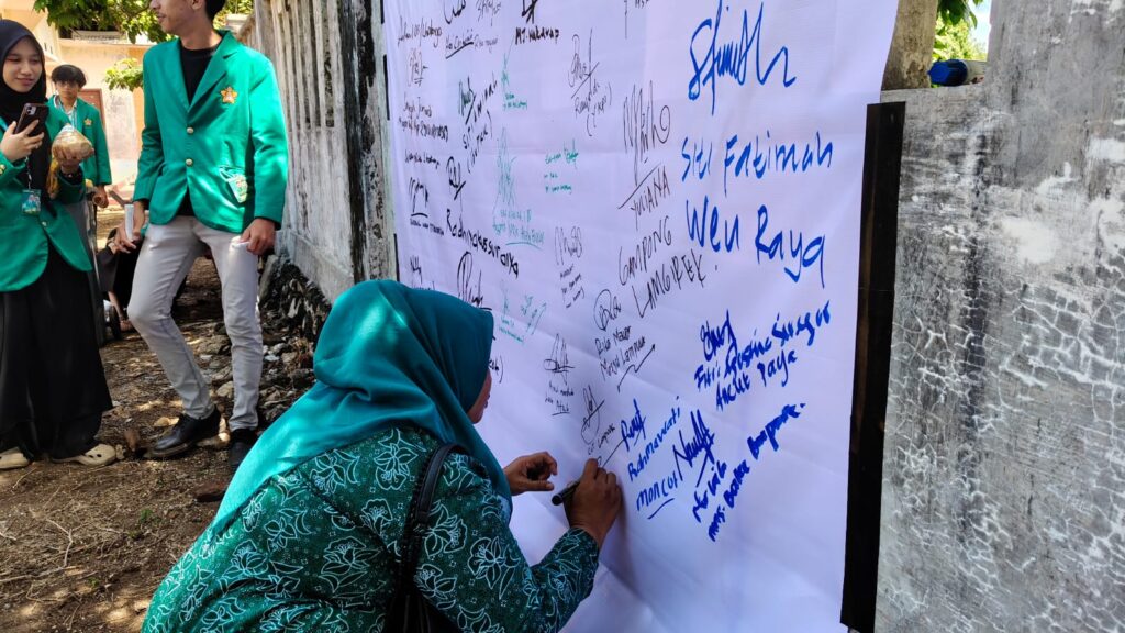 Salah seorang anggota PKK menandatangani komitmen penanggulangan perubahan iklim.